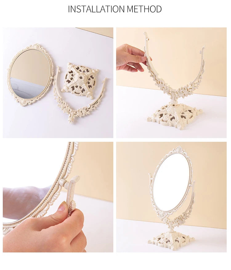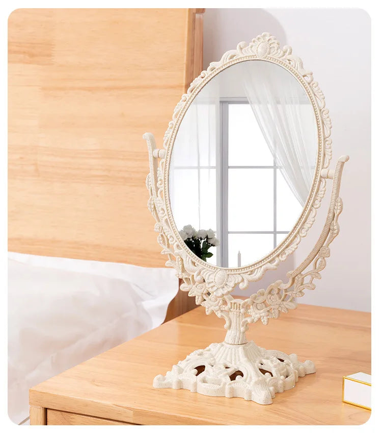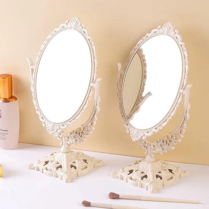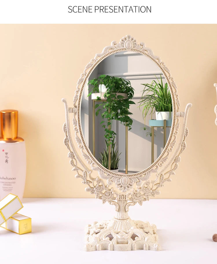 Verwandeln Sie Ihr tägliches Schönheitsritual mit unserem exquisiten Vintage-Oval-Schminkspiegel. Der Spiegel verbindet perfekte Eleganz mit praktischer Funktionalität und fügt sich nahtlos in Ihr Dekor ein.