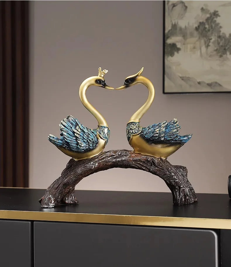 Erhöhen Sie Ihre Dekoration mit diesen Schwanenornamenten aus Harz, die entworfen wurden, um Raffinesse und visuelles Interesse in jeden Raum zu bringen.