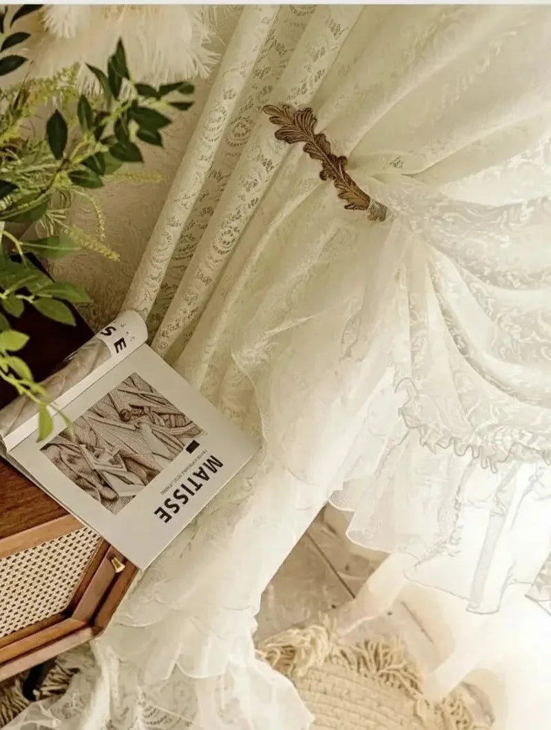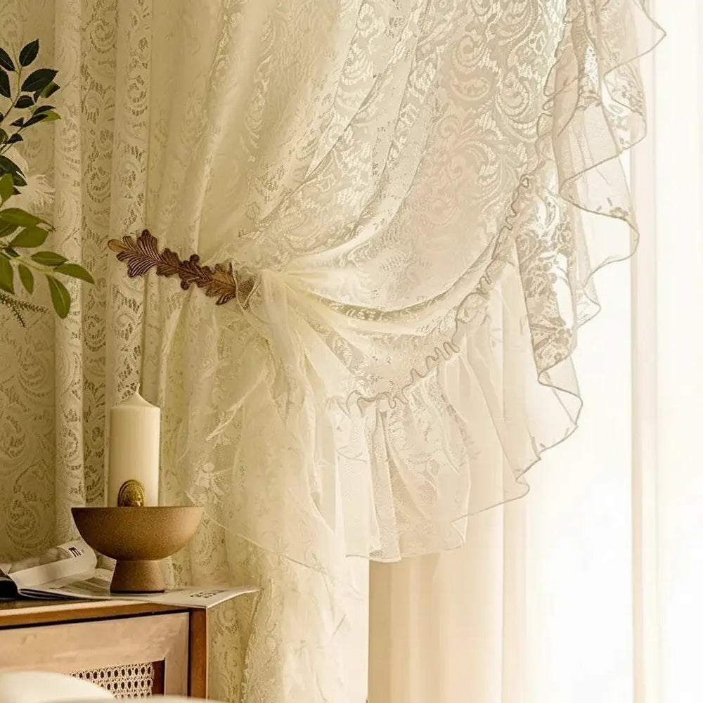 Verwandeln Sie Ihren Wohnraum mit unseren französischen idyllischen soliden weissen geraffelten Tüllvorhängen, die Romantik und Raffinesse ausstrahlen.