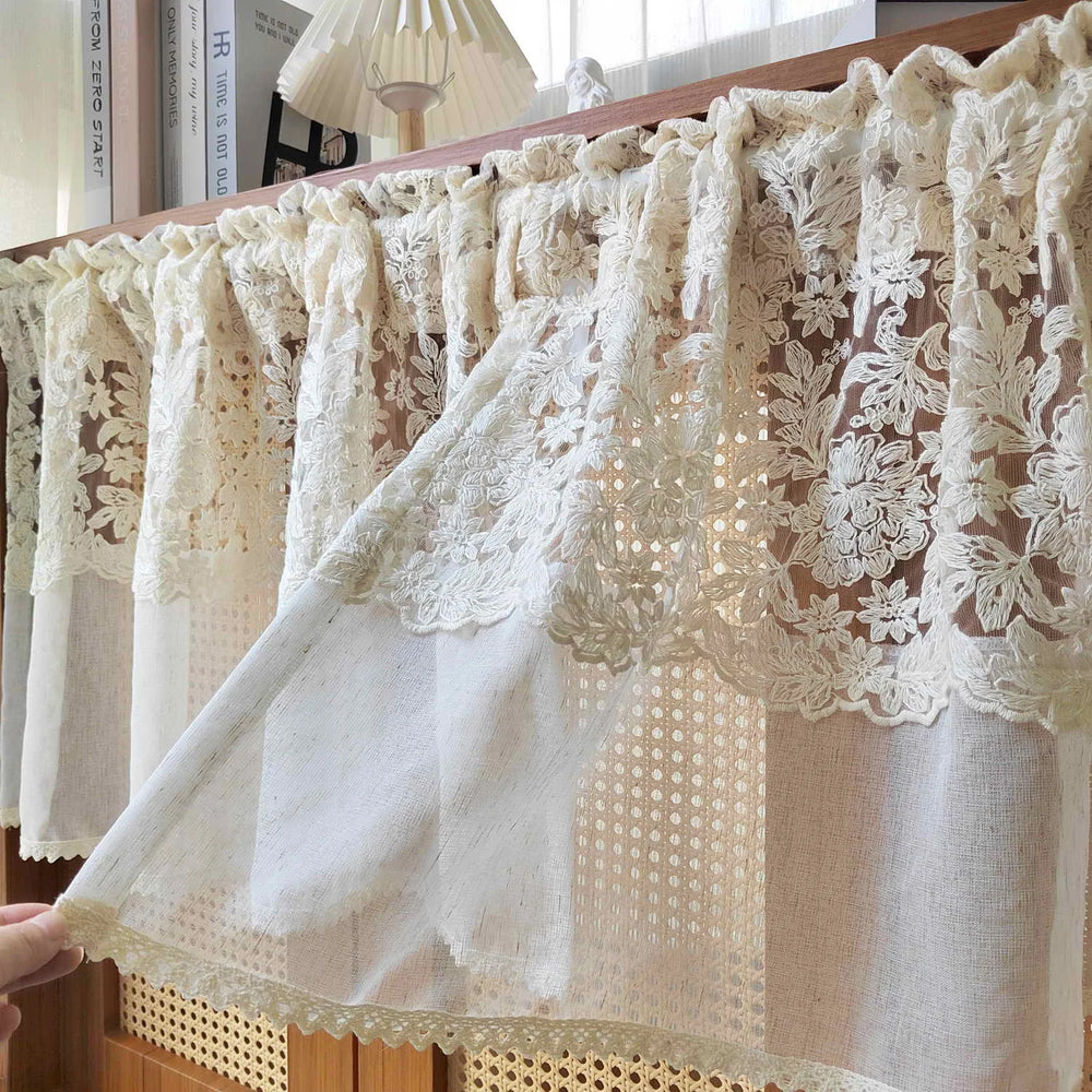 Verwandeln Sie jeden Raum in ein Refugium der Raffinesse mit unserem exquisiten Spitzenbesatz-Vorhang. Entwickelt, um sowohl Vintage-Ästhetik als auch modernen rustikalen Stil zu ergänzen, sorgt er für eine warme und einladende Atmosphäre.