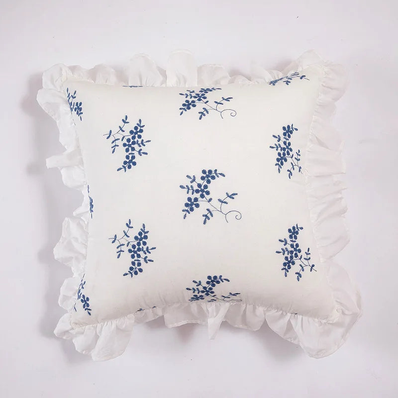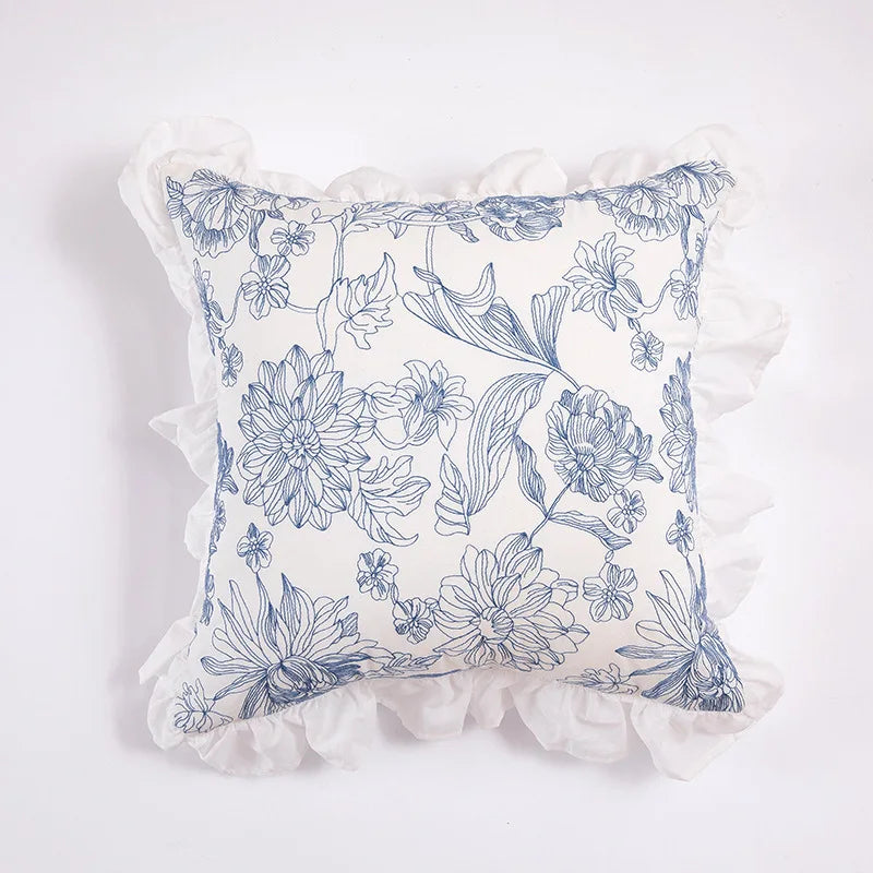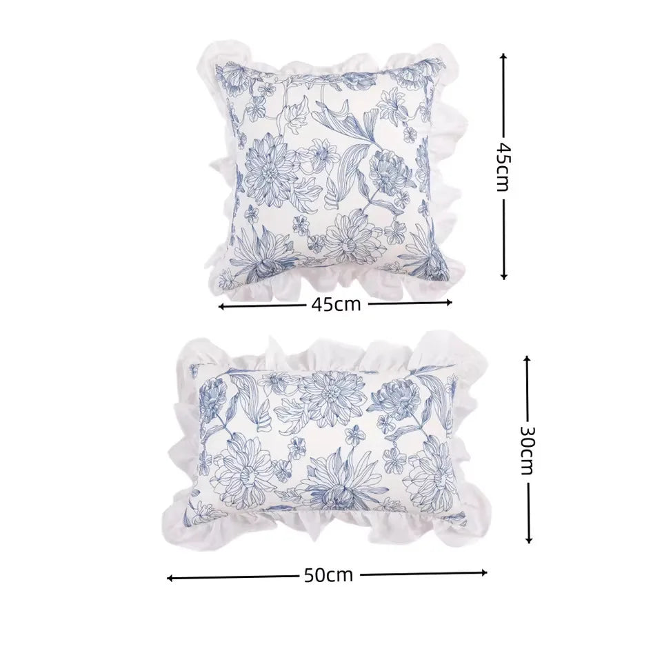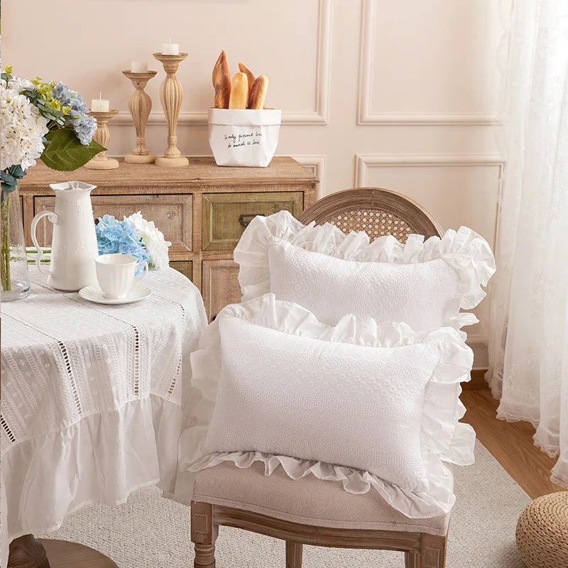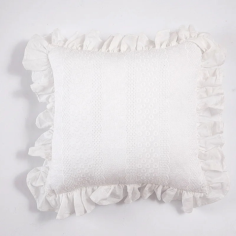 Verwandeln Sie Ihr Sofa oder Bett in eine stilvolle Oase mit diesen Kissenbezügen, die mit zarten Rüschenkanten und kunstvollen Patchwork-Mustern gestaltet sind.