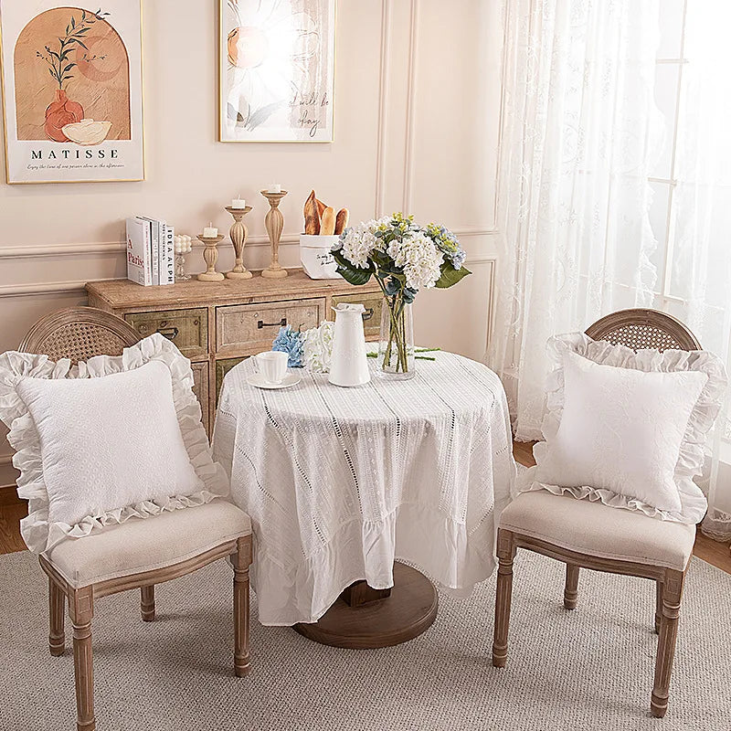 Verleihen Sie Ihrem Wohnraum mit unseren aus Baumwolle hergestellten Kissenbezügen mit Spitzenstickerei einen Hauch von Eleganz und Komfort. Ideal für jeden Raum.