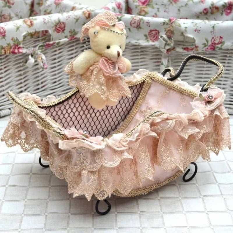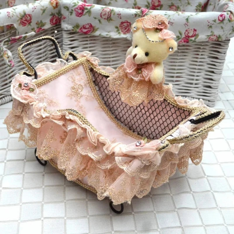 Der Korb besteht aus Spitzenstoff mit umweltfreundlichen Materialien.