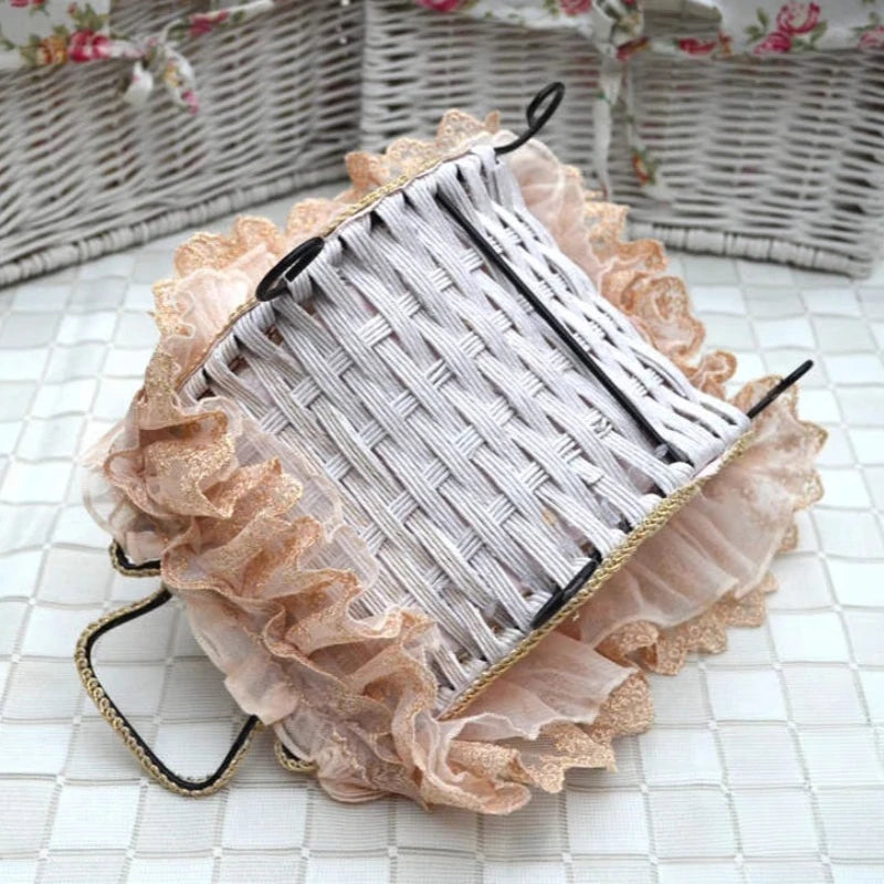 Gefertigt aus Spitze, unterstützt von einem stabilen Eisendrahtgestell und ergänzt durch Bambuselemente, bietet dieser Korb nicht nur funktionale Aufbewahrung, sondern verschönert auch Ihren Raum. Der goldene Rosaton verleiht einen Hauch von Luxus und verwandelt alltägliche Organisation in ein stilvolles Ereignis.