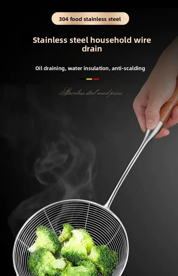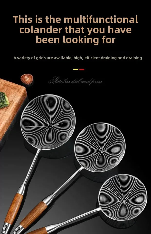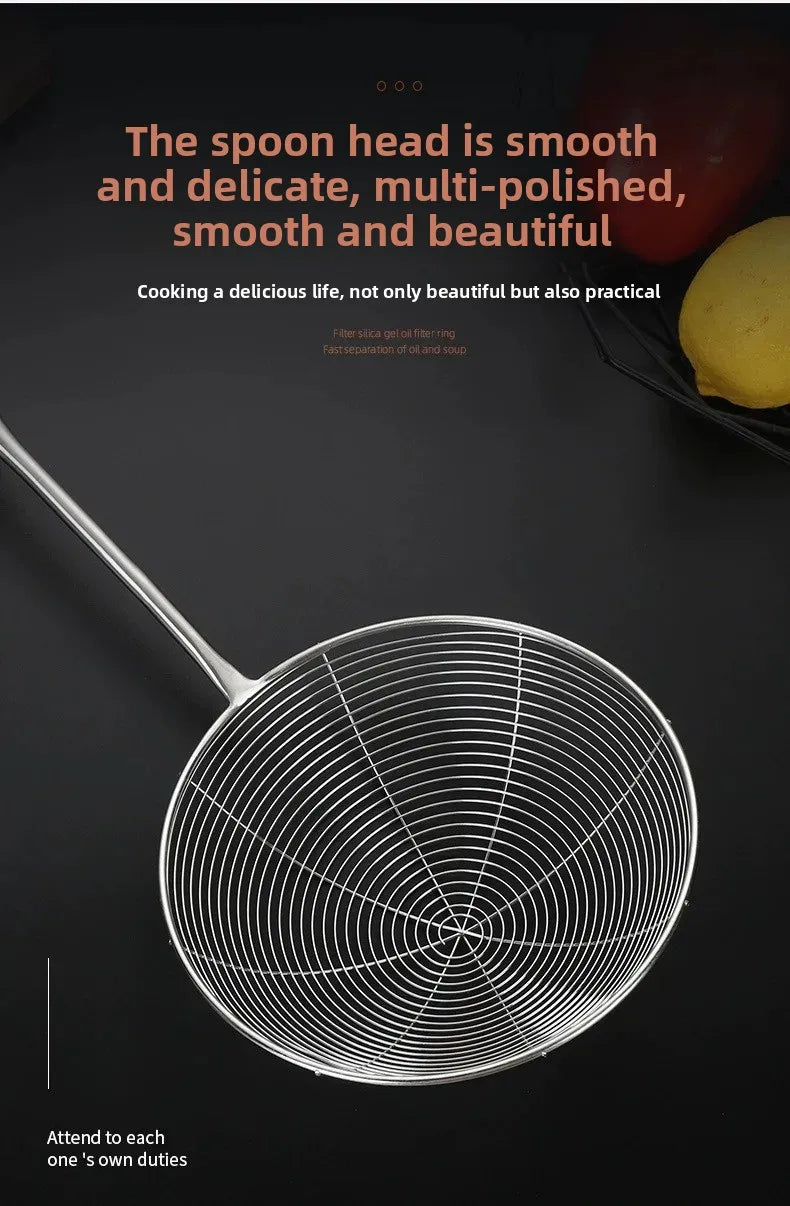 Ob Sie zu Hause ein traditionelles Heisstopfgericht zubereiten oder die Fähigkeiten Ihrer Restaurantküche verbessern, dieser Abschäumer dient sowohl als Abtropfsieb als auch als stilvolle Ergänzung Ihres Küchenwerkzeugs.