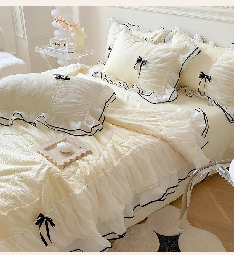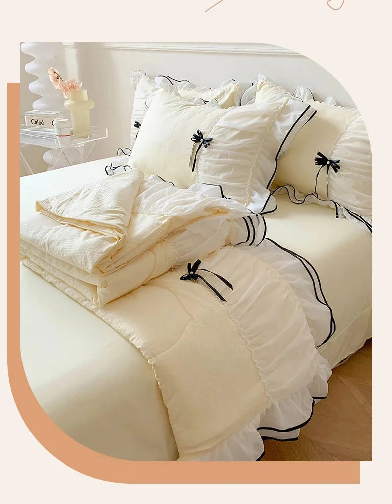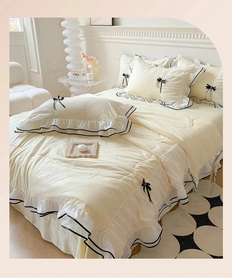 Geniessen Sie die sommerliche Raffinesse mit unserem doppellagigen Spitzen-Sommer-Quilt-Set, das ideal ist, um ein einladendes und schickes Schlafzimmer zu schaffen. Entworfen für den Gebrauch zu Hause und im Hotel, erleben Sie kühle Bequemlichkeit und Eleganz in jeder Faser.