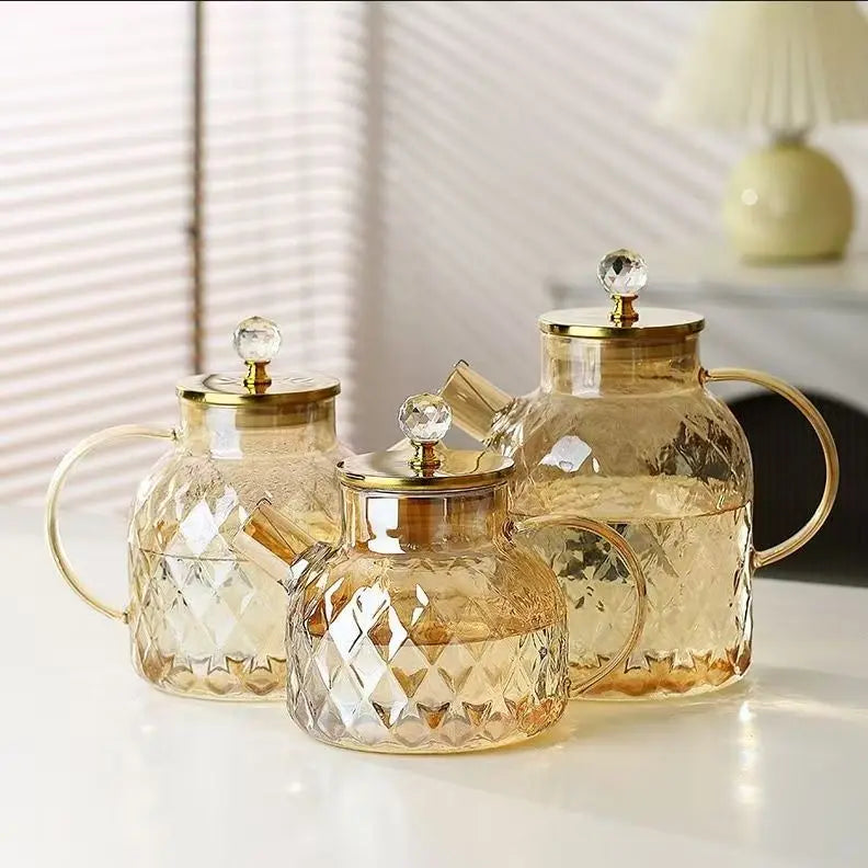 Erleben Sie die perfekte Mischung aus Kunst und Nutzen mit unserem exklusiven Glasteekessel-Set, entworfen für Teeliebhaber, die Stil und Eleganz suchen.
