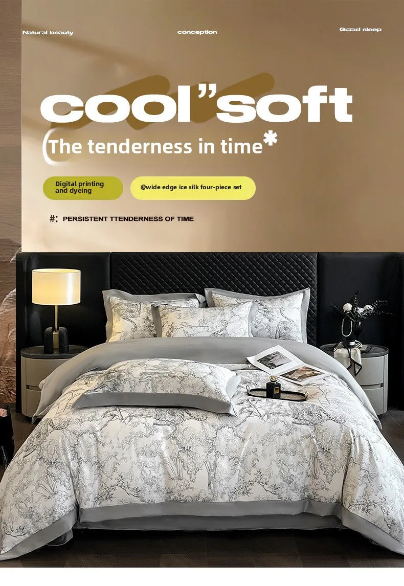 Mit unserem luxuriösen Tencel Bettwäscheset verleihen Sie Ihrem Schlafzimmer einen Hauch von Wildnis. Dieses vierteilige Set bringt exotischen Flair und höchsten Komfort in Ihr Schlafrefugium.