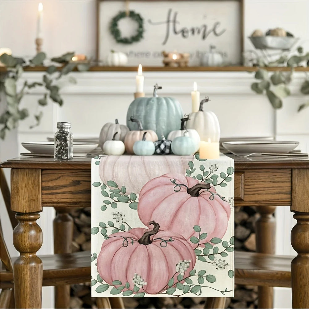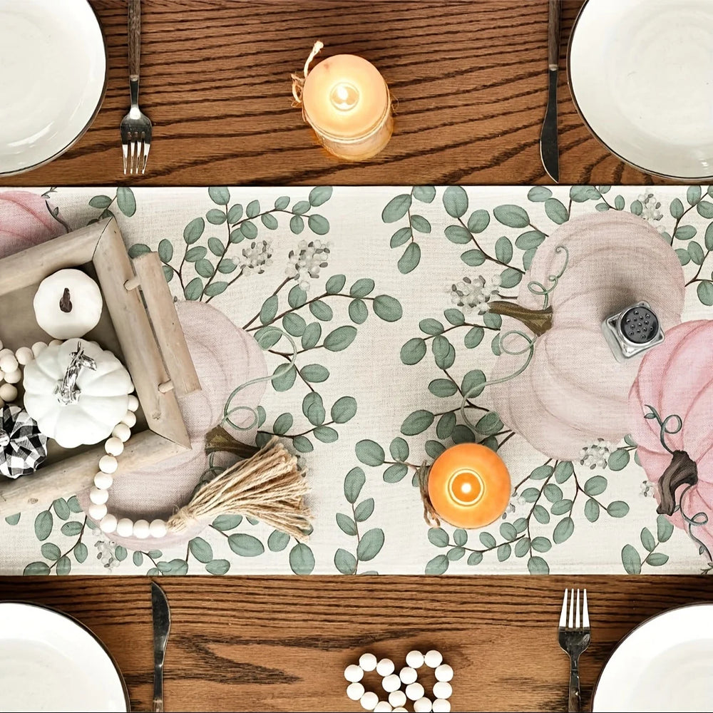 Dieser Tischläufer steht in verschiedenen Grössen zur Verfügung und passt sich an unterschiedliche Tischmasse an, um die perfekte Ergänzung für Ihr Ambiente zu finden. Ideal für eine gemütliche und einladende Herbstatmosphäre.
