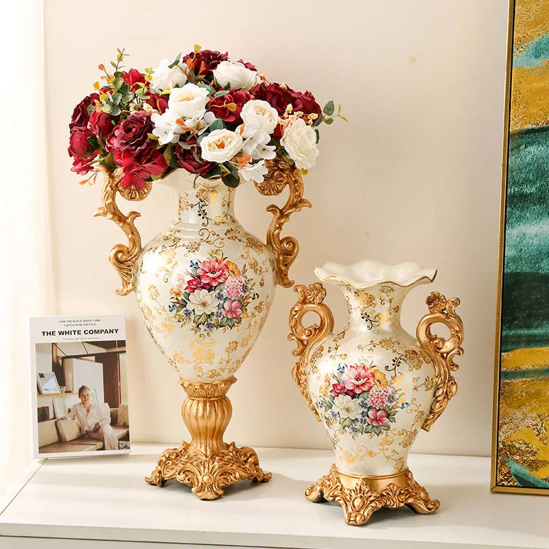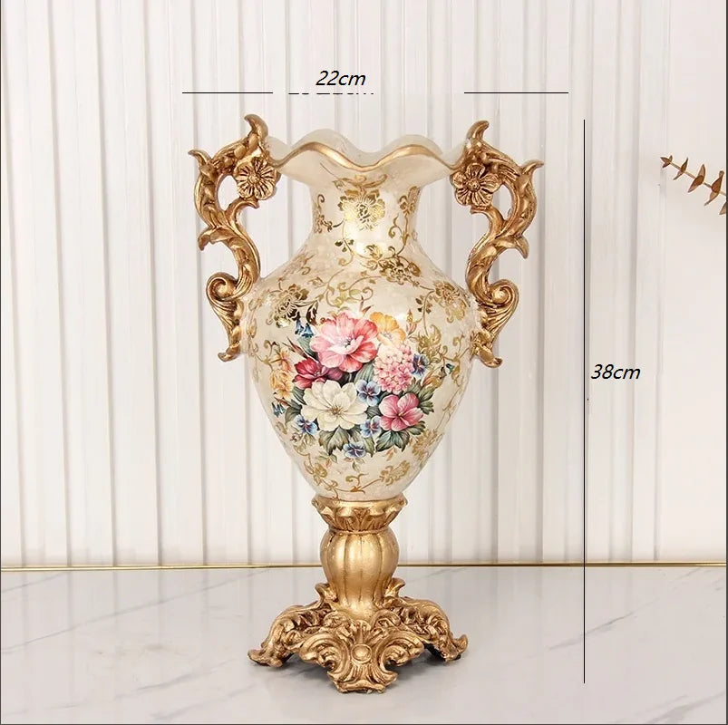 Verleihen Sie Ihrem Zuhause mit unserer exquisiten Tischvase im amerikanischen Stil aus hochwertigem Harz einen Hauch von Raffinesse. Perfekt, um jedem Raum eine stilvolle Note zu verleihen.