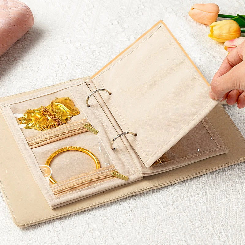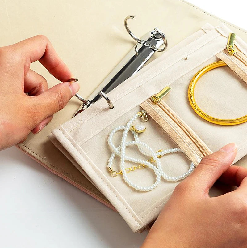 - Mit seinem innovativen Ringbindung-Design ermöglicht dieser Schmuckbuch-Organisator Ihnen, Ihre Aufbewahrungsoptionen anzupassen. Tipp: Wenn Sie dicken Schmuck aufbewahren möchten, wird empfohlen, die Anzahl der Seiten zu reduzieren, um ein Quetschen Ihres Schmucks zu vermeiden.