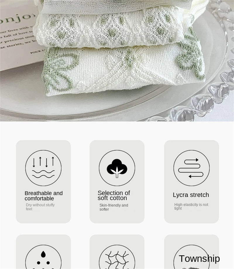5 Paare von atmungsaktiven Socken aus Kartensilk für Frauen, süsse Blumenjacquard-Socken, erfrischend und atmungsaktiv, die erste Wahl für den Sommer
