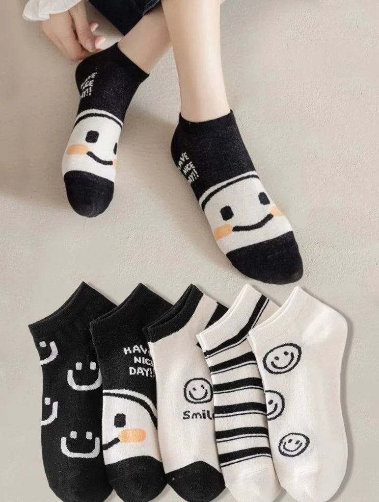 Hergestellt aus einer Mischung aus Glass Seide, Baumwolle, Polyester und Spandex, verbinden diese Socken Haltbarkeit mit einem zarten Erscheinungsbild. Das niedrige Design und das dünne Material sorgen dafür, dass sie perfekt für das Schichten sind, ohne Volumen hinzuzufügen. Jede Packung enthält fünf Paar Socken, jedes mit einem einzigartigen Blumenmuster.