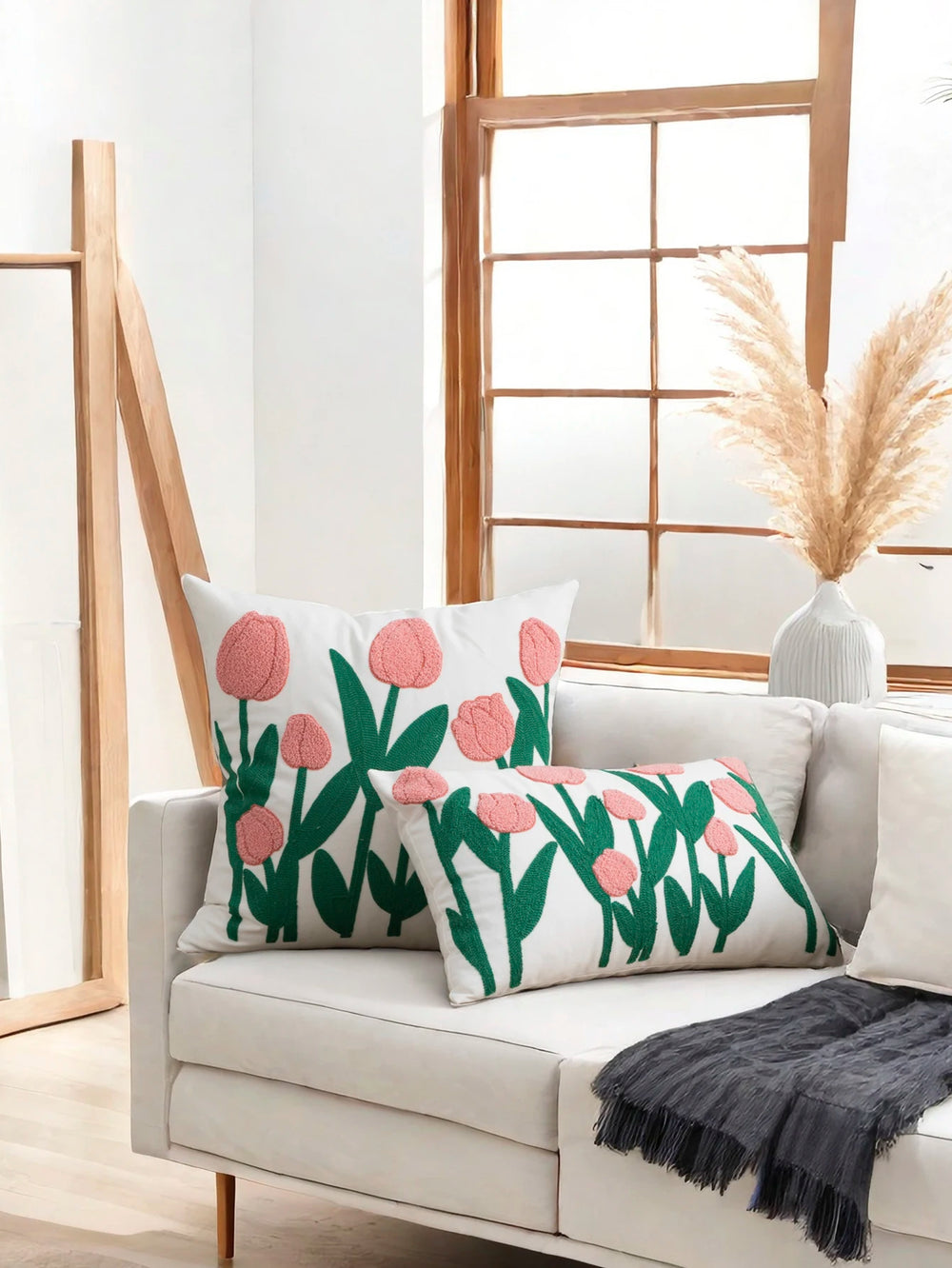 Mit seinem einzigartigen Tulpenmuster ist dieser Bezug ein Zeugnis erstklassiger Handwerkskunst und Liebe zum Detail. Die weichen Materialien sorgen für Komfort, während das lebhafte Design ein stilvolles Statement abgibt.