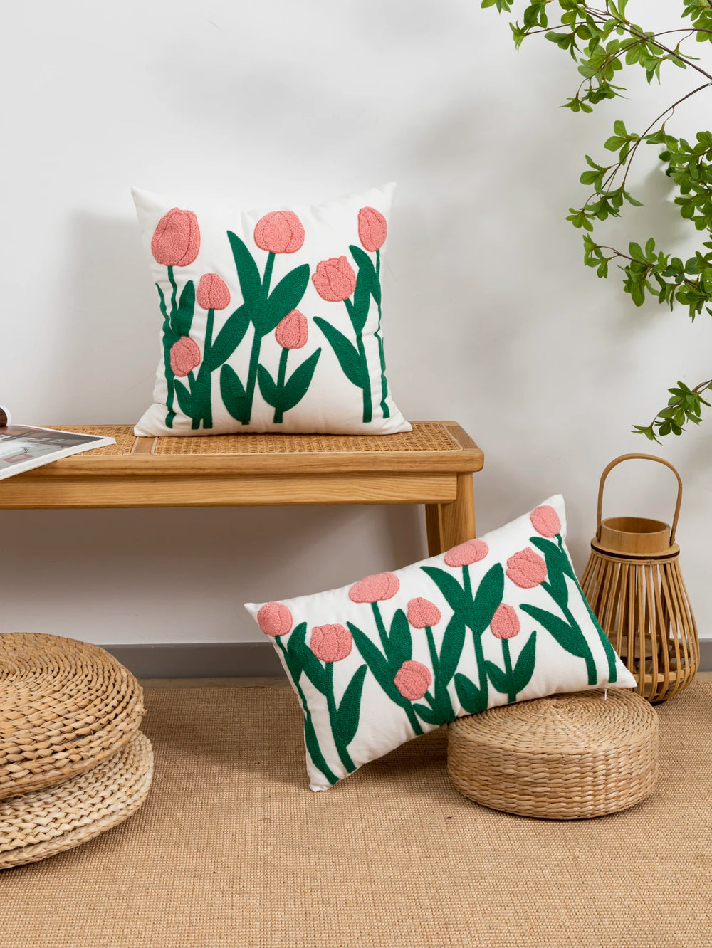 Lebe den Bohemian-Lifestyle mit unserem eleganten Tulpenmuster Kissenbezug, der jedem Raum Charme und Komfort verleiht.