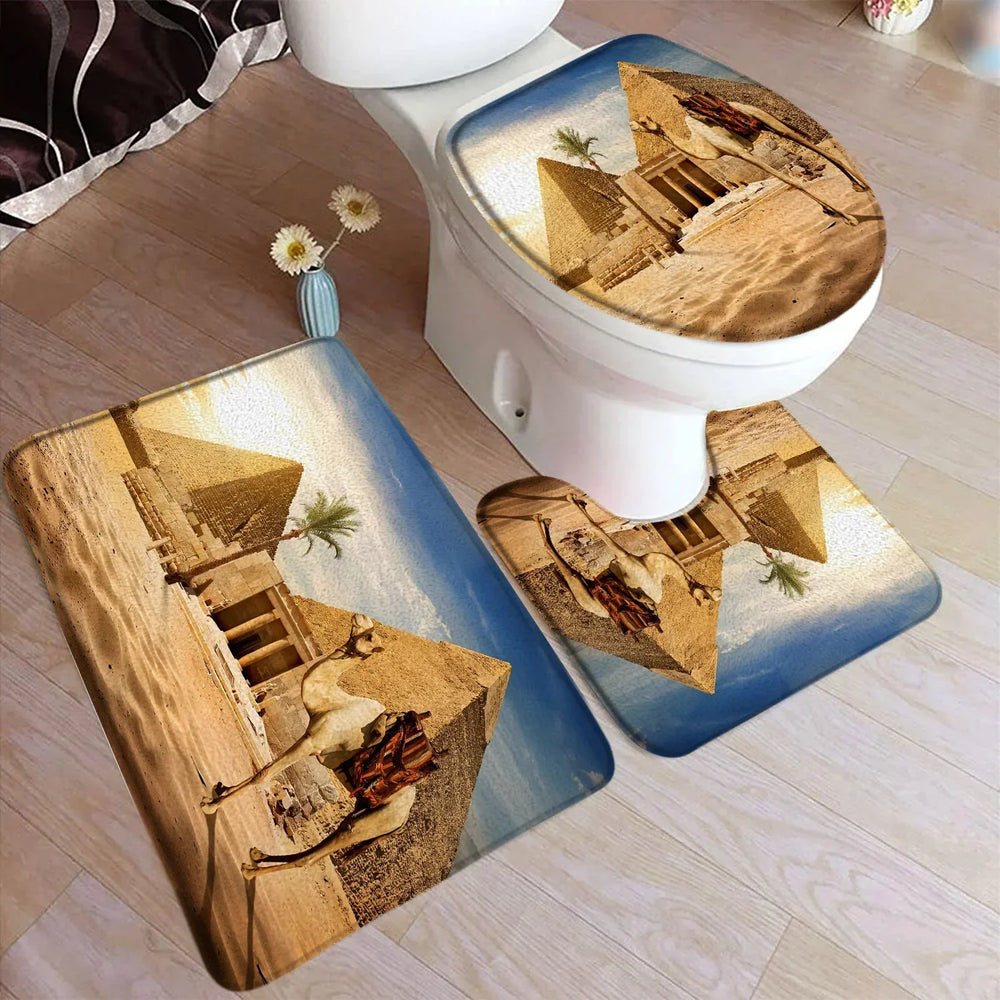 Dieses vielseitige Set enthält ein Quadratpolster, ein U-Polster und einen WC-Bezug, ideal für Ihr Badezimmer, die Wohnkultur oder sogar einen gemütlichen Platz an der Bar oder als Bodenmatte. Erleben Sie das üppige Gefühl von Wildleder unter den Füssen und geniessen Sie das zeitlose ägyptische Thema.