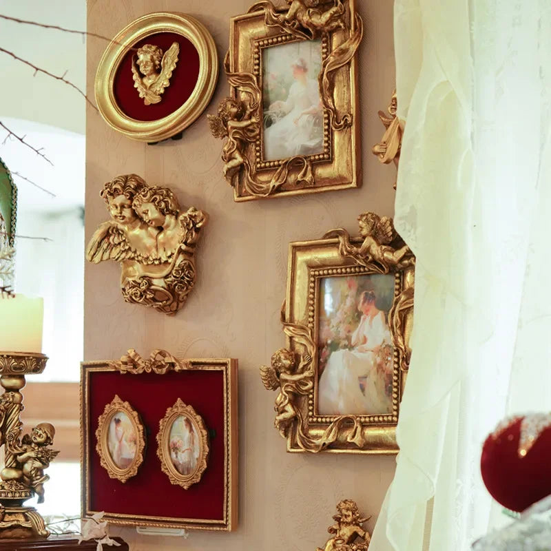Vintage Europäischer Stil roter Samt Engel Relief Harz Bilderrahmen