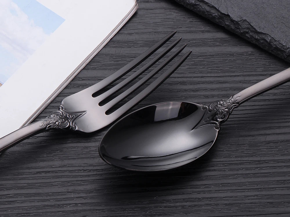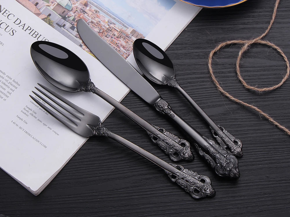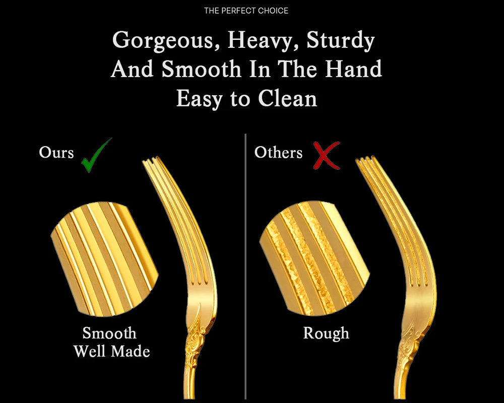 Erleben Sie kulinarische Eleganz mit unserem Vintage Gold Besteckset, das jede Mahlzeit mit seinem luxuriösen Finish und der langlebigen Edelstahlkonstruktion veredelt.