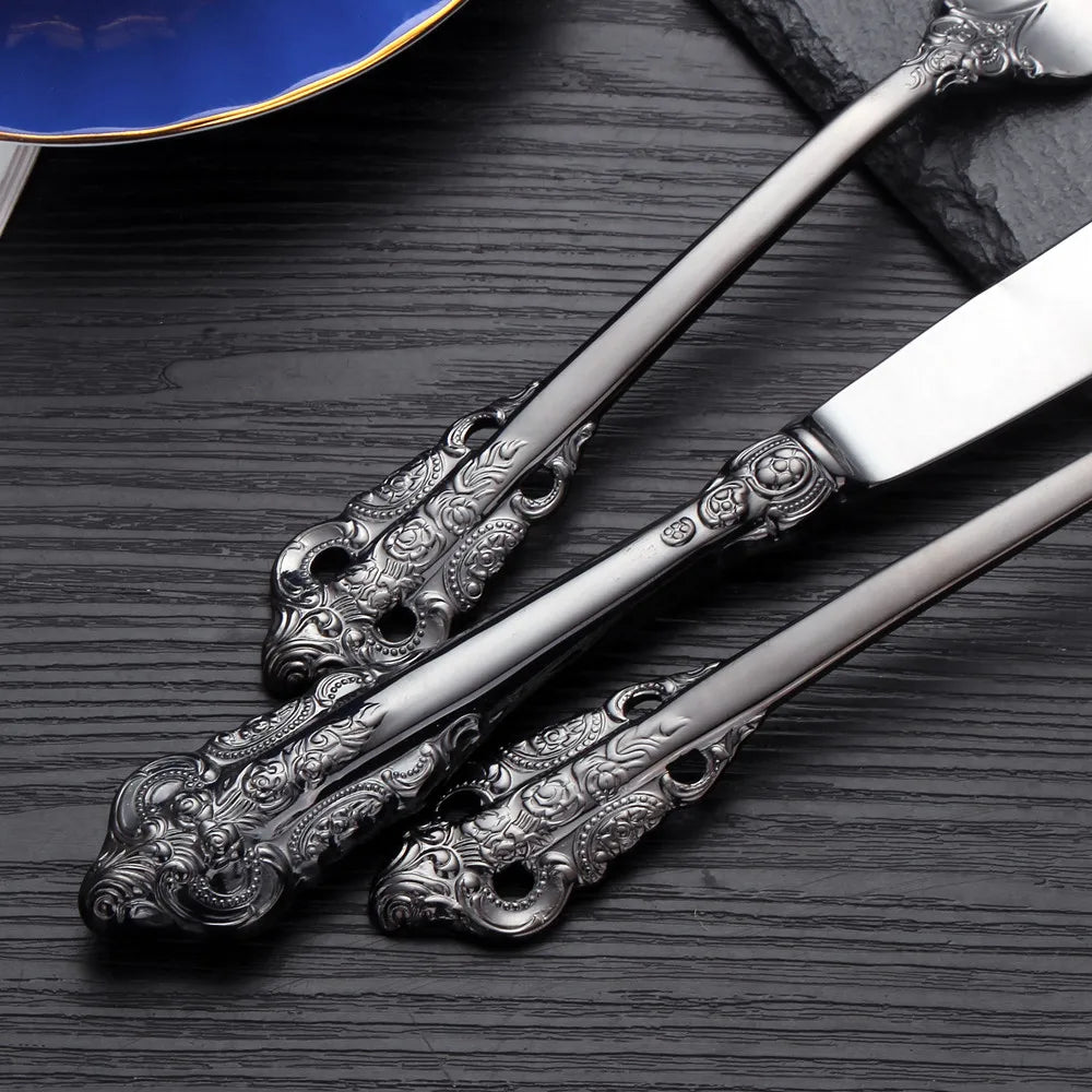 Verwandeln Sie Ihren Esstisch in ein königliches Bankett mit unserem exquisiten Vintage Gold Besteckset. Für alle, die Eleganz und Raffinesse schätzen, verspricht dieses Set, jede Mahlzeit zu veredeln.