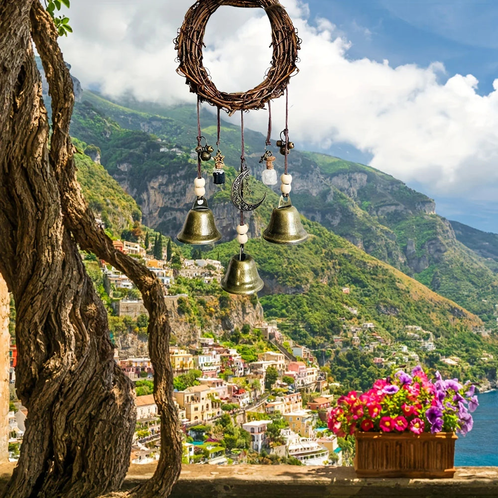 Mystische Hexenglocken: Diese hexenhaften Windspiele sind rustikal und besonders mit Glocken- und Ranken-Design, diese Hexenglocken-Dekorationen sind besonders geeignet für Halloween-Decks oder Gärten.