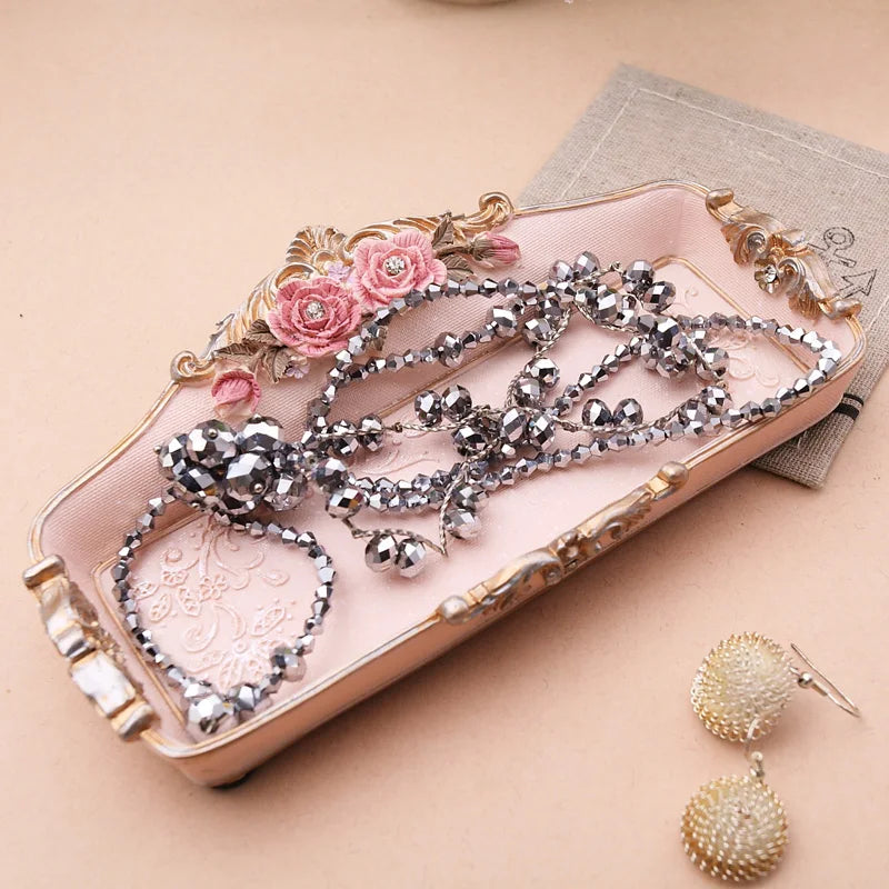 Entdecken Sie die harmonische Verbindung von Eleganz und Nutzen mit unserem Europäischen Vintage Prinzessin Schmucktablett aus Resin. Dieses Stück verspricht, Ihrem Zuhause einen Hauch von Königtum zu verleihen.