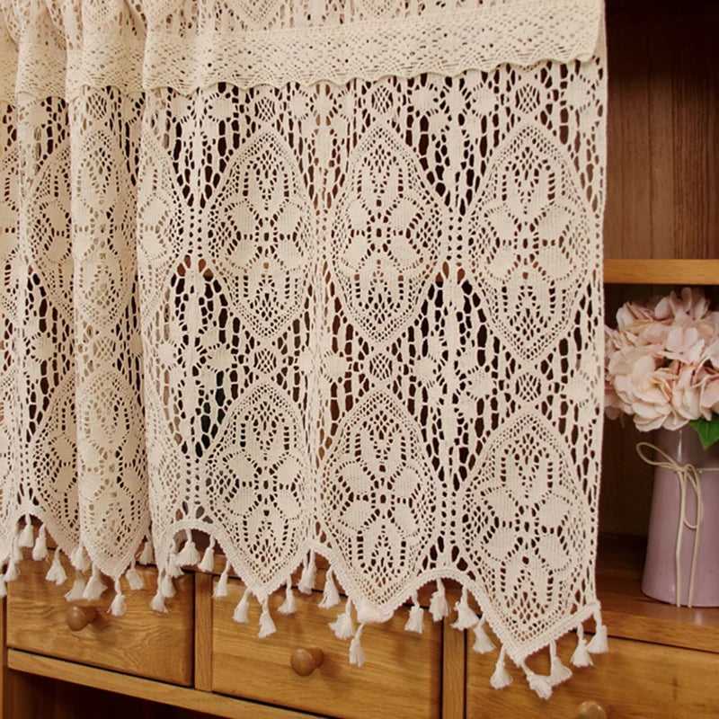 Schaffen Sie eine warme und einladende Atmosphäre mit unseren charmanten Vintage-Spitzenvorhängen – perfekt, um jedem Raum einen Hauch von Eleganz zu verleihen. Hergestellt aus 100% Polyester sind diese American Style Vorhänge sowohl funktional als auch stilvoll.