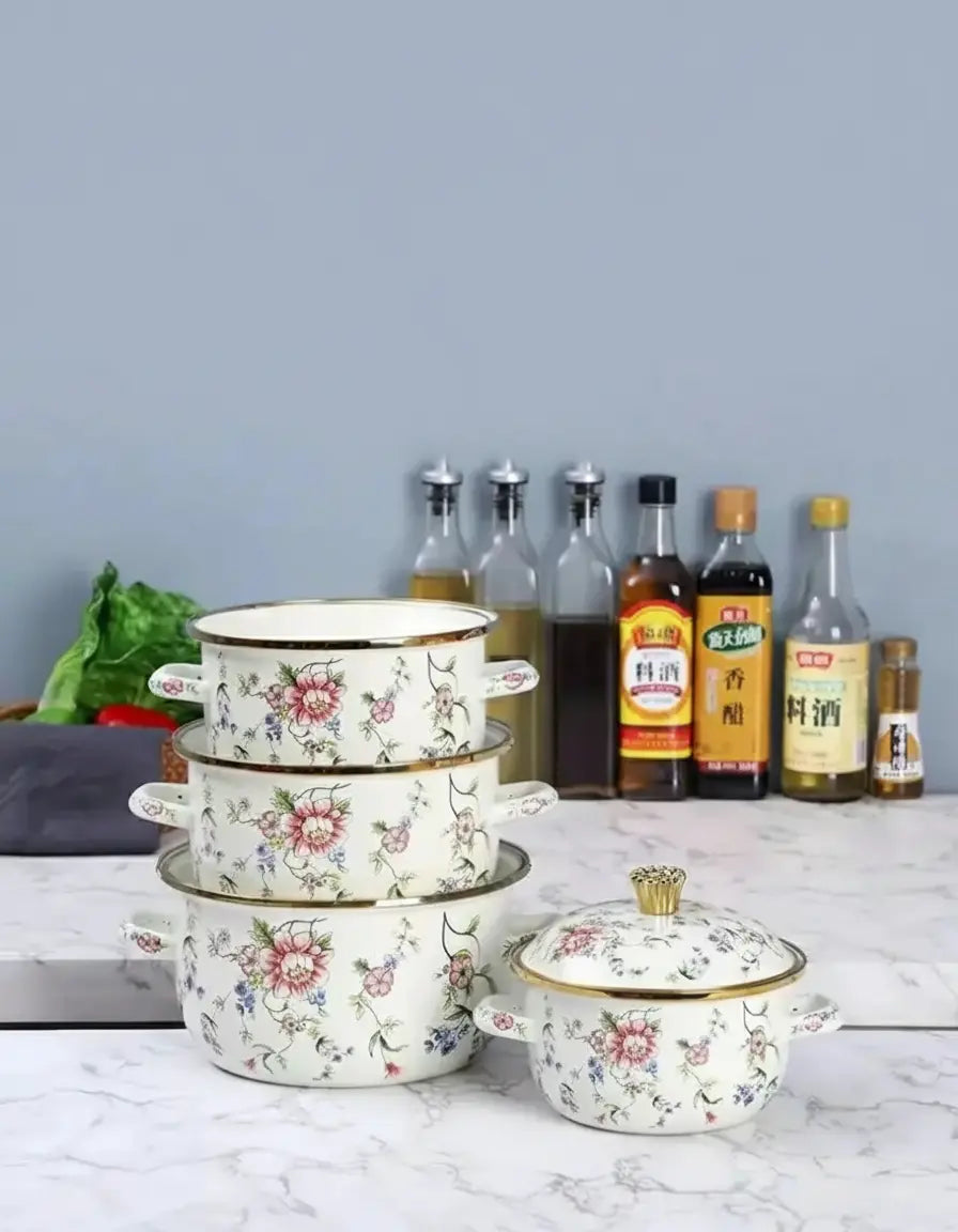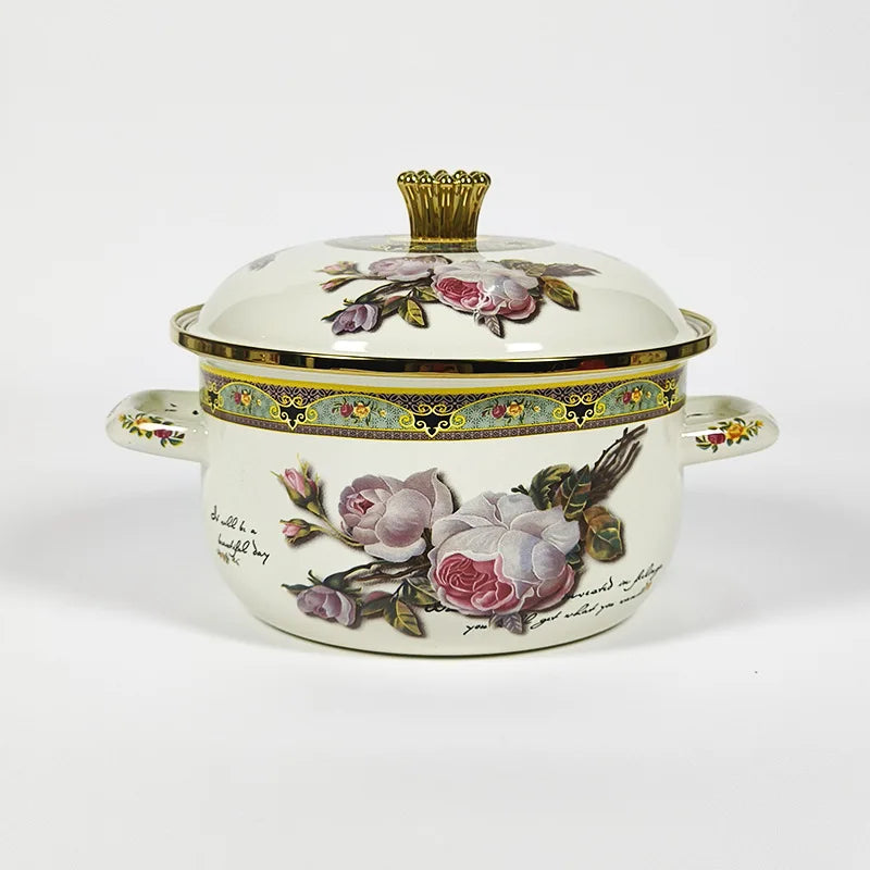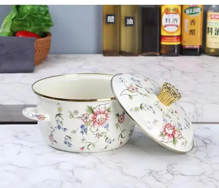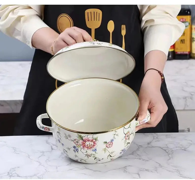 Unser Vintage-Emaille-Suppentopf bietet ein raffiniertes Kocherlebnis, das klassisches Design mit moderner Funktionalität verbindet.