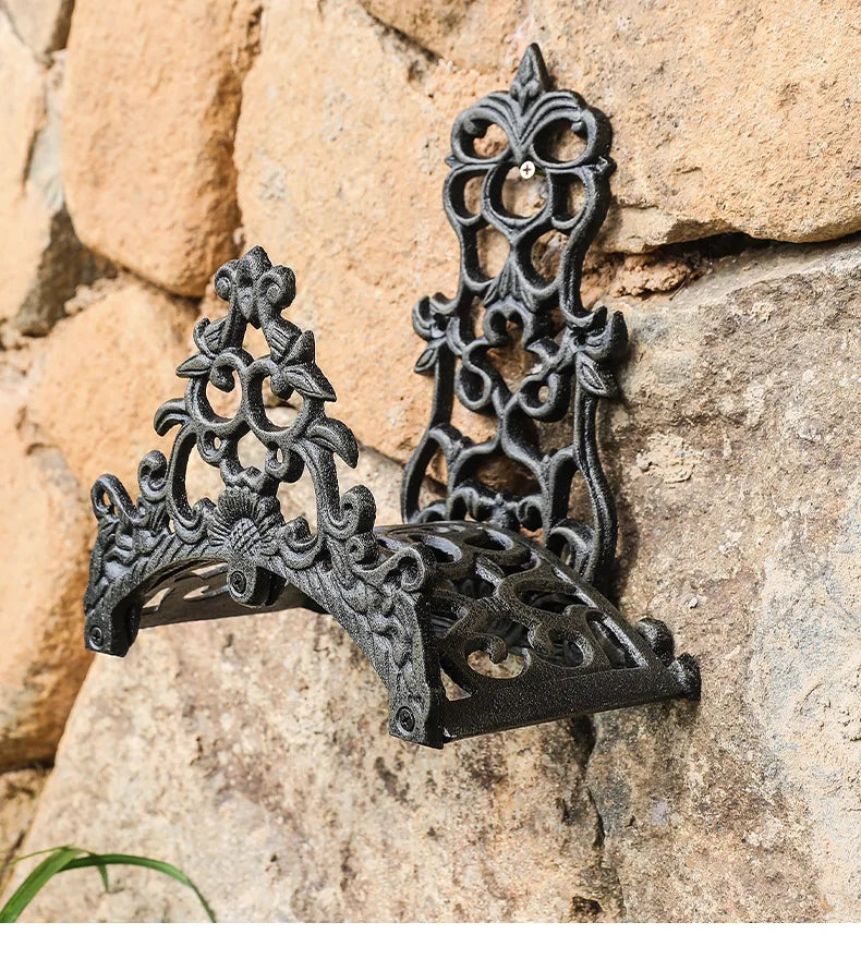 Perfekt für Aussenbereiche, dieses wandmontierte Regal hält Gartenaccessoires oder dekorative Gegenstände und verbindet Funktionalität mit ästhetischem Reiz. Der Kontrast aus robustem Kupfer und künstlerischer Verarbeitung macht es zum Highlight jeden Raumes.