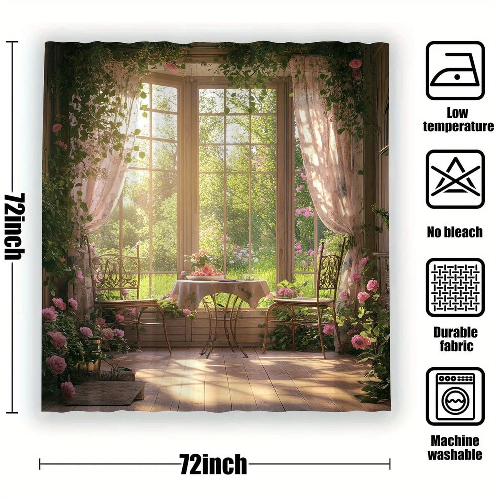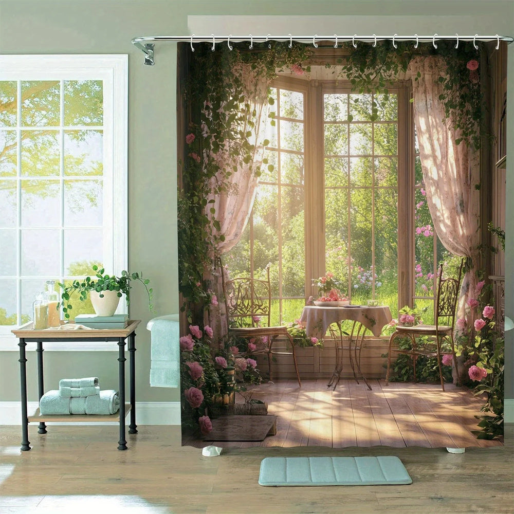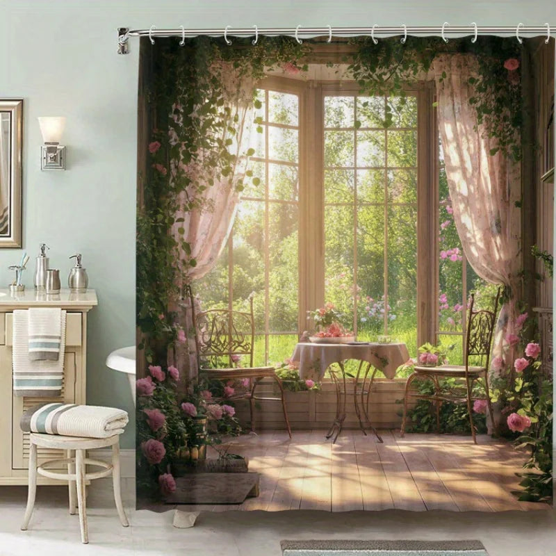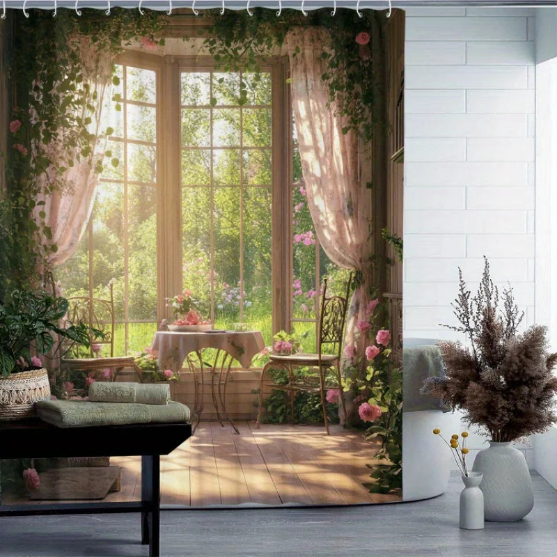 Verwandeln Sie Ihr Badezimmer in eine ruhige Waldlandschaft mit unserem Wald-Fenster-Duschvorhang. Entworfen für Naturliebhaber bringt dieser Duschvorhang die Ruhe der Natur in Ihr Zuhause.