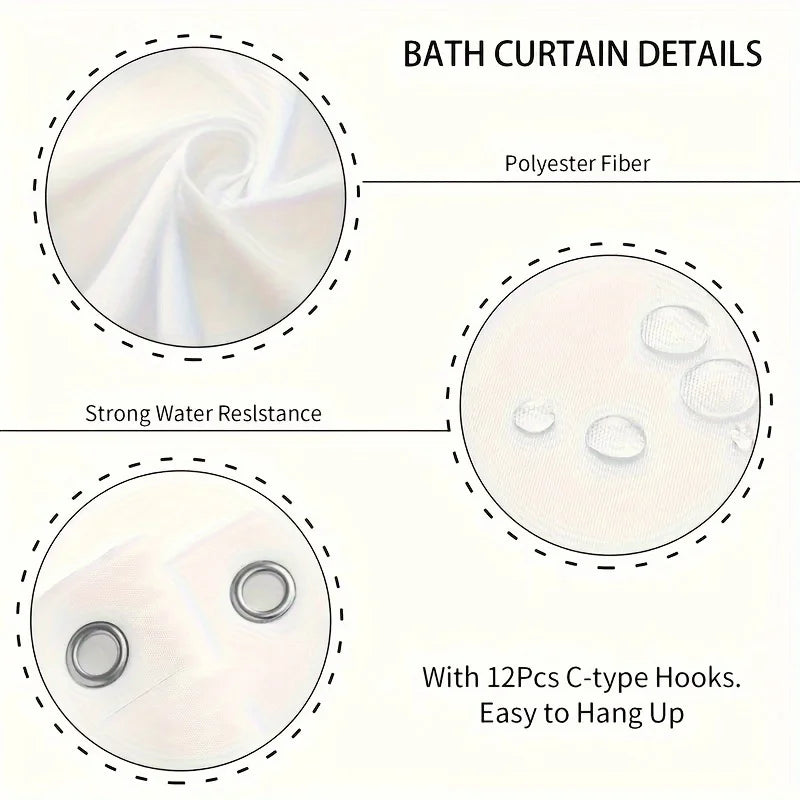 Jedes Stück ist aus hochwertigem Polyester-Mischgewebe gefertigt und sorgt für langanhaltende Nutzung. Der Vorhang ist mit praktischen Haken für eine einfache Installation ausgestattet. Erhältlich in verschiedenen Grössen, passend für Ihr Standard-Bad oder ein kleines Gäste-WC.