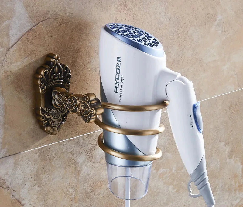 Erleben Sie die perfekte Kombination aus Vintage-Stil und moderner Funktionalität mit unserem Föhnhalter. Dieses elegante Stück hebt das ästhetische Erscheinungsbild Ihres Badezimmers und bietet zugleich praktischen Stauraum für Ihre Haarutensilien.