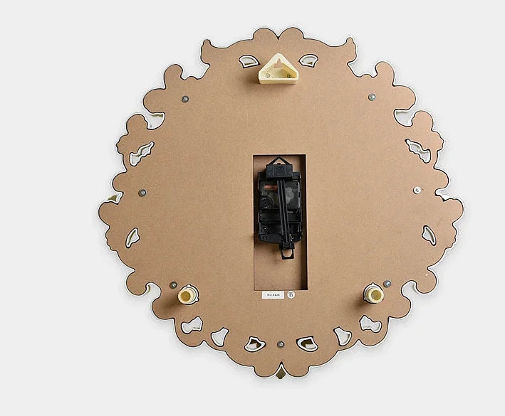 Gefertigt mit Glasspiegel und PVC-Gehäuse, im pastoralem Stil mit Nadelanzeige. Die Uhr läuft mit einer Batterie für leise Präzision.
