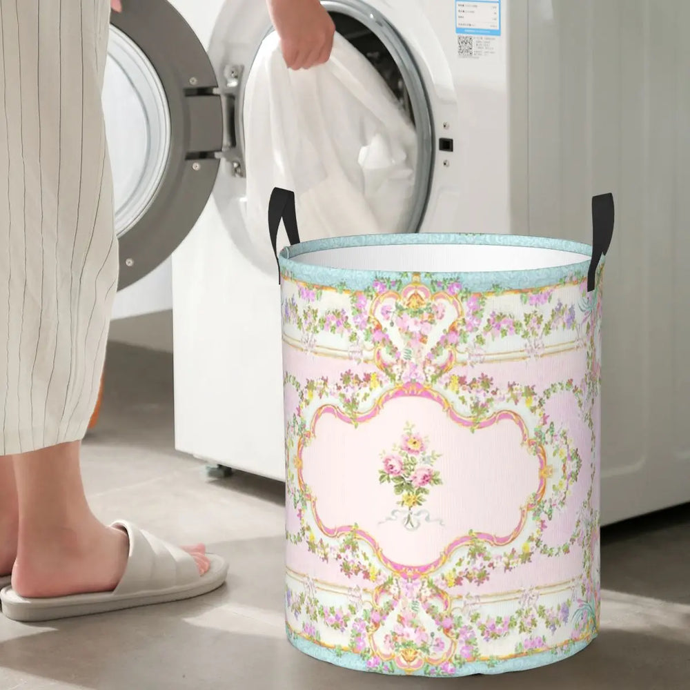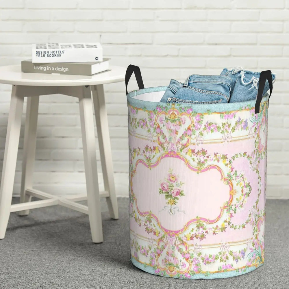 Verleihen Sie Ihrem Wohnraum mit unserem exquisiten Wäschekorb mit Blumenakzent Eleganz und Funktionalität.