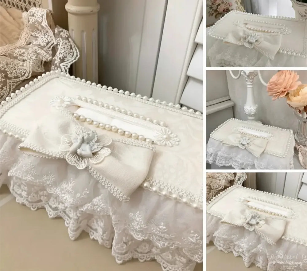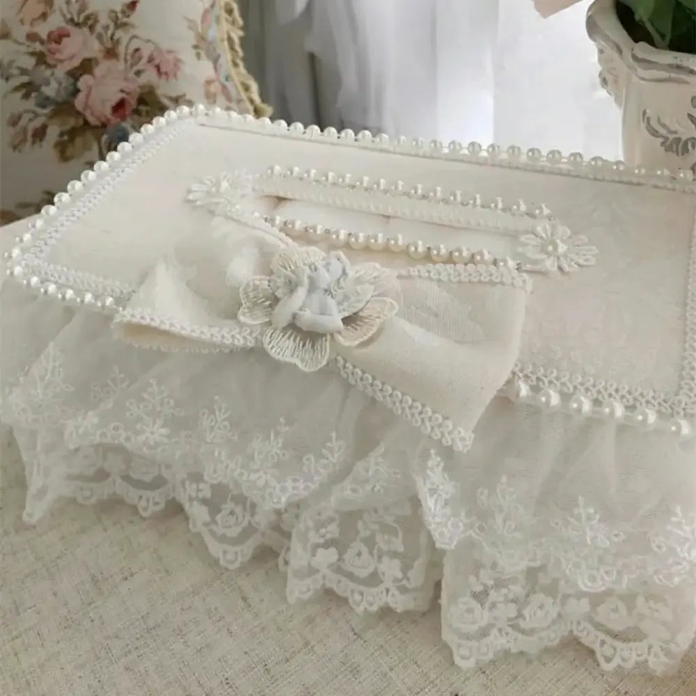 Entdecken Sie die Perlen-Spitzen-Taschentuchbox, die mit ihrem luxuriösen Design Ihre Wohnkultur aufwertet.