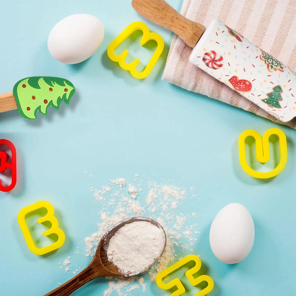 Robuste Holzgriffe: Der Teigroller und der Spatel sind mit stabilen Holzgriffen ausgestattet, die einen komfortablen Griff bieten und die Gesamt Haltbarkeit des Sets erhöhen. Das natürliche Holz verleiht dem festlichen Design eine klassische Note mit einem warmen, rustikalen Gefühl.
