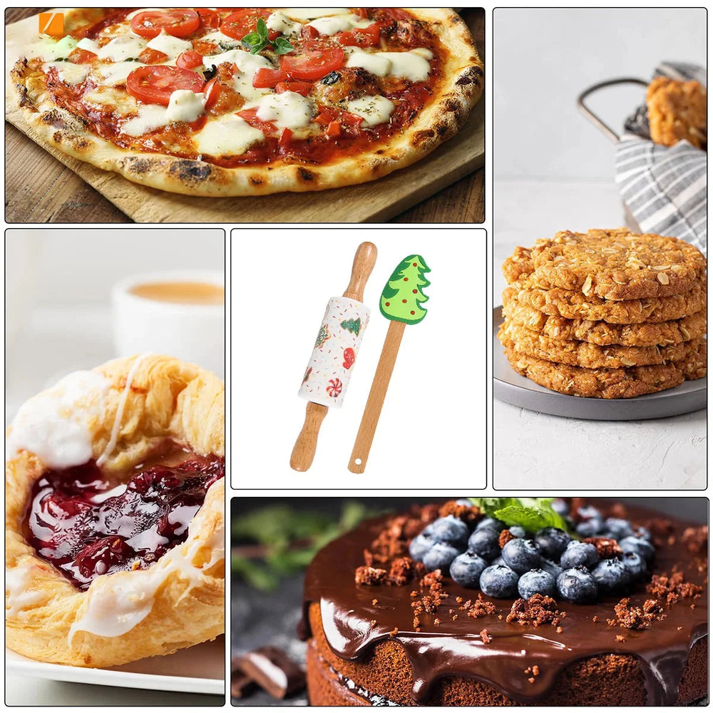 Festliches Weihnachtsdesign: Umarmen Sie den Feiertagsgeist mit diesem Weihnachts-Teigroller- und Spatel-Set. Mit charmanten Feiertagsmustern, einschliesslich Weihnachtsbäumen und festlichen Dekorationen, verleiht dieses Set Ihrem Backerlebnis eine fröhliche Note und ist perfekt für Feiertagsleckereien.