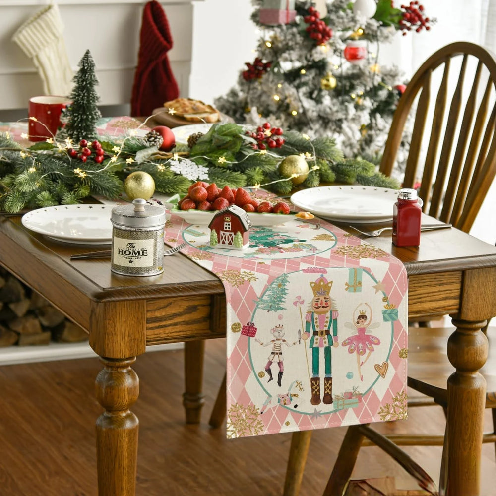 Dieser exquisite Tischläufer zeigt ein charmantes rosa Karomuster, akzentuiert mit saisonalen Motiven und ist ein unwiderstehlicher Mittelpunkt für jeden Anlass. Handwaschbar und einfach flach trocknen, ist dieser Läufer genauso praktisch wie schön. Verleihen Sie Ihren Feiertagsfeiern einen unvergesslichen Rahmen.