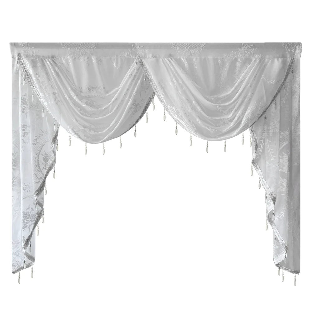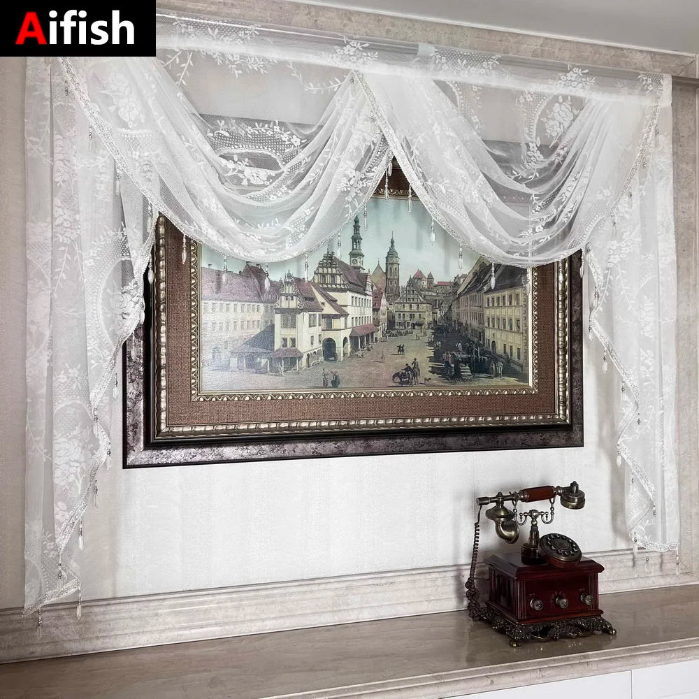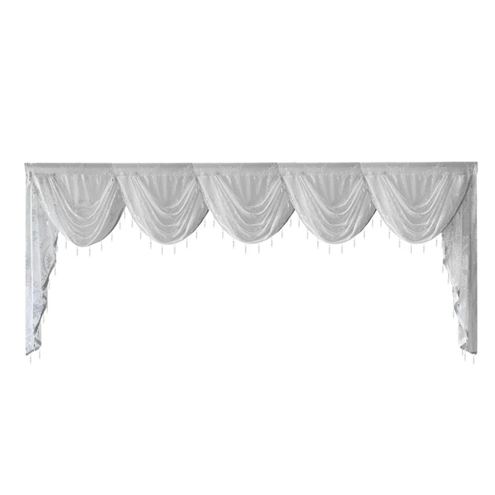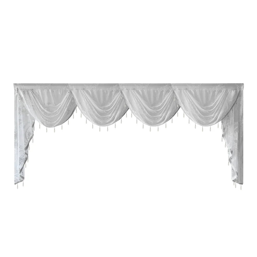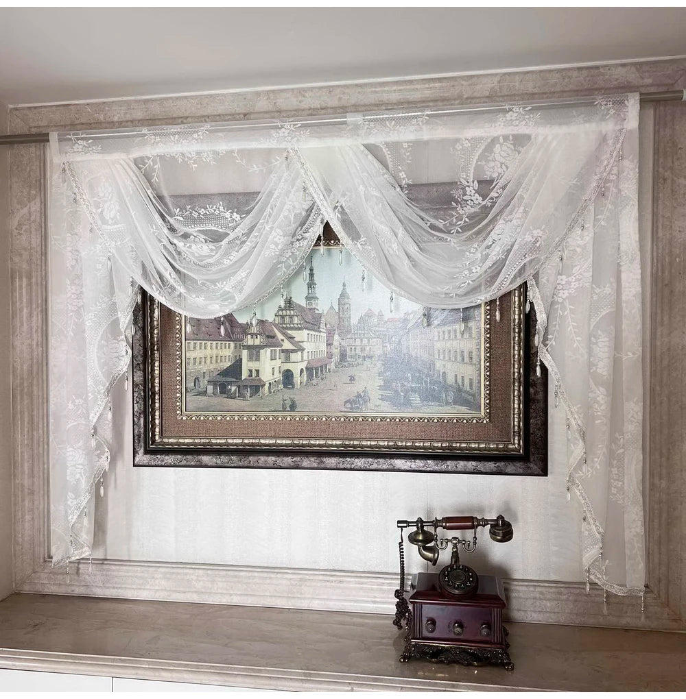 Verwandeln Sie Ihr Wohnzimmer in einen Zufluchtsort voller Luxus und Eleganz mit unserer weissen Spitzen-Scheibengardine. Zart gestaltet mit bestickten Blumenperlen, verleiht sie jedem französischen Fenster einen Hauch von Raffinesse.