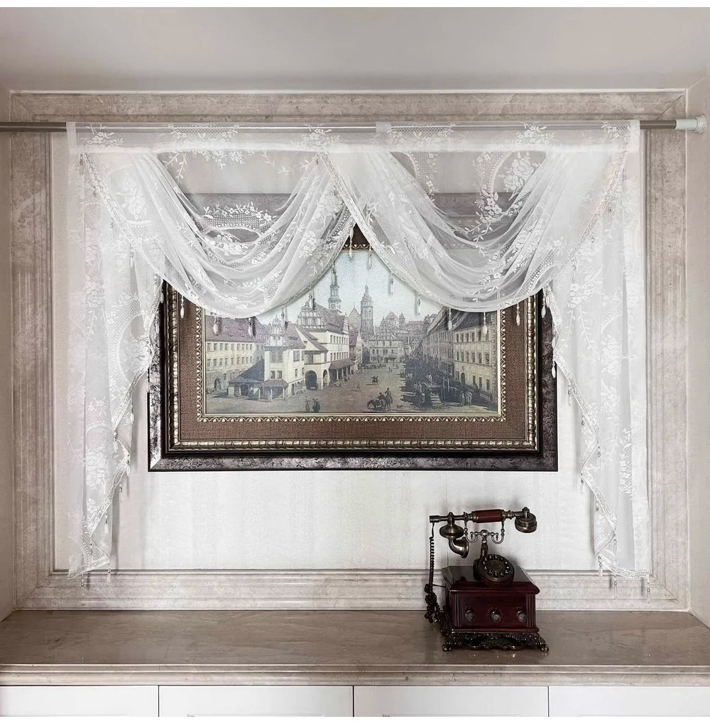 Ob Sie Ihrem Zuhause einen Hauch von Luxus verleihen oder eine einladende Atmosphäre in einem öffentlichen Raum schaffen möchten, diese Scheibengardine vereint Funktion mit herausragendem Design. Bitte beachten Sie, dass der Preis für ein Stück gilt und zusätzliche Swags oder Stoff separat erworben werden können, um Ihre Fensterdekoration zu vervollständigen.